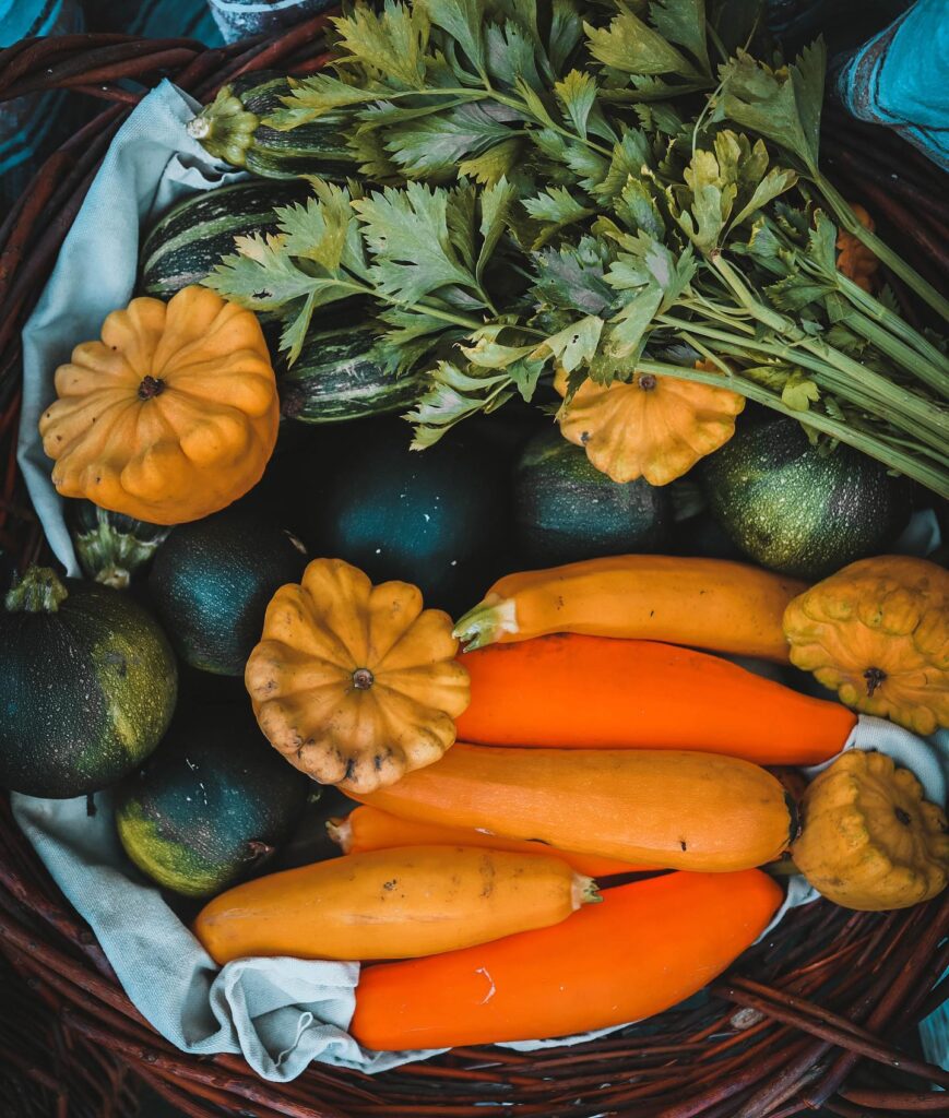 Produse alimentare: Fructe și legume proaspete de sezon, plante aromatice, boboase, făina din porumb, nuci, oțet de mere și alte fructe, unt ghee, produse fermentate din legume si fructe, gemuri si dulceturi, produse conservate din legume, amestecuri de plante pentru infuzii.